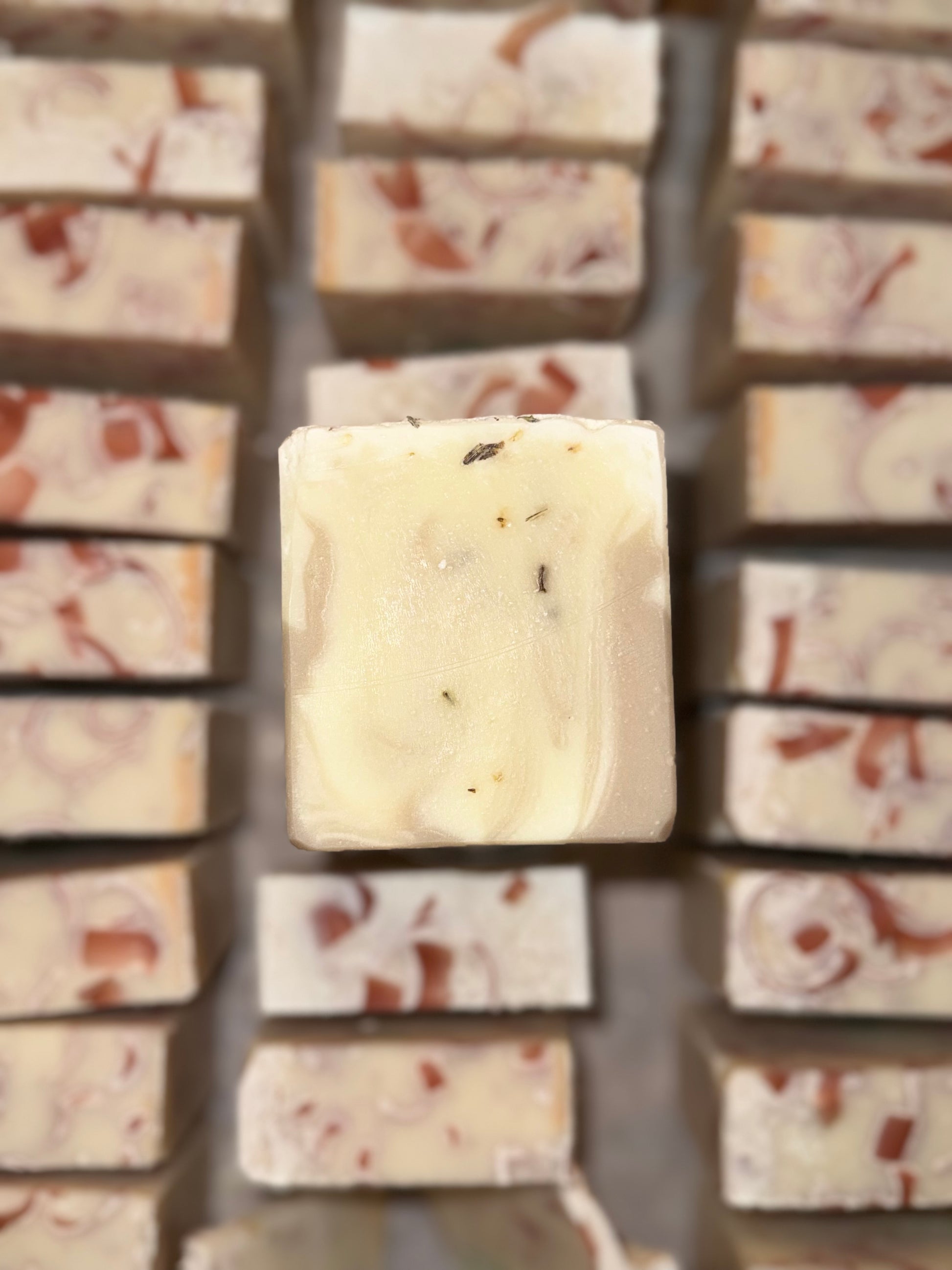Infused with pure lavender essential oil, alkanet root–infused oil, and sprinkled with lavender flowers, each bar offers a gentle herbal aroma that transforms your daily routine into a moment of quiet comfort. Naturally hued and beautifully swirled, it’s the perfect blend of simplicity and indulgence.